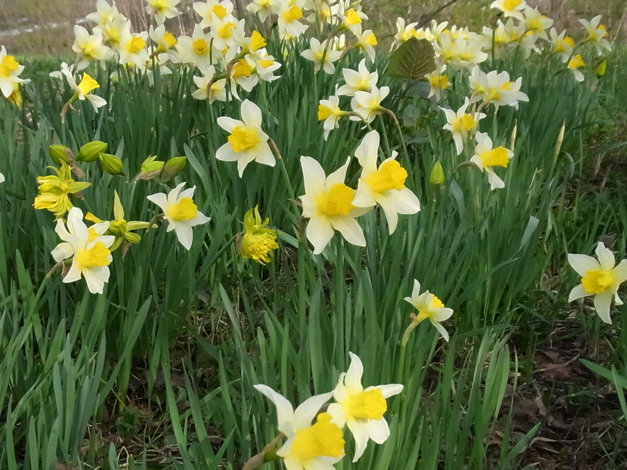 帰りは裏庭で作業していた友人宅のお母さんからお庭の水仙2種、レンギョ(ウ?)、ヒヤシンス2種をいただいて、夕方の我が家は洗濯もののお日様の匂いと春のお花の匂いでしあわせ〜な空間でありました。